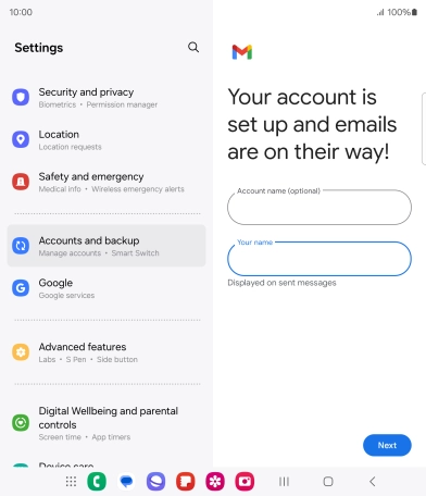 If this screen is displayed, you email account has been recognised and set up automatically. Follow the instructions on the screen to key in more information and finish setting up your phone.