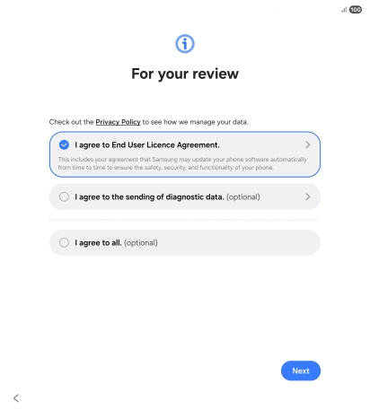 Press the required setting to transfer content from another device or press Set up manually.