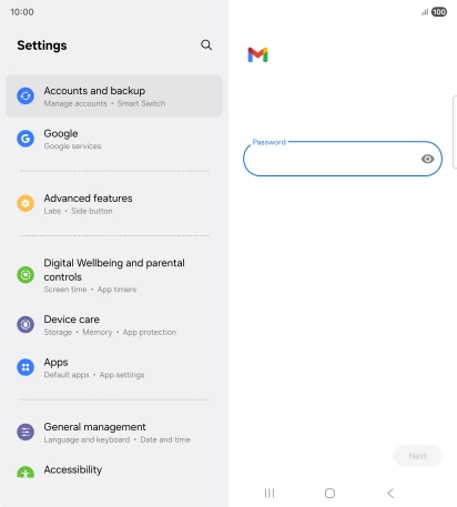 Press the field below "Password" and key in the password for your email account.