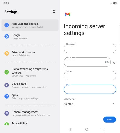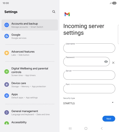 Samsung Galaxy Z Fold7 - Set up your phone for IMAP email | Vodafone Ireland