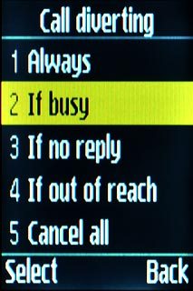 If you choose to divert all calls, the divert icon is displayed in standby mode.