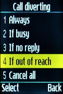 Scroll to Divert to and key in (prefix) 5 (your phone number)