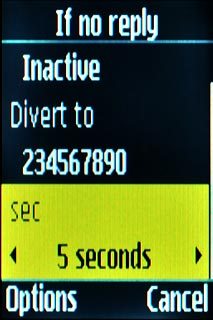If you selected If no reply in step 2, you need to select a delay for the divert: