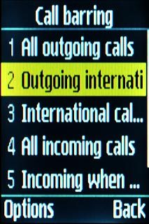 Key in your barring password (default is 0000) and press Options.