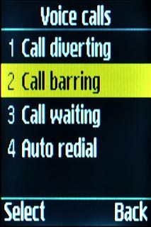 Scroll to Call barring and press the Navigation key.