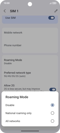 2. Turn data roaming on or off