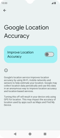 If you press the indicator next to "Improve Location Accuracy" to turn off the function, your phone can find your exact position using the GPS satellites but it may take longer as there is no access to supplementary information from the mobile network or nearby Wi-Fi networks.