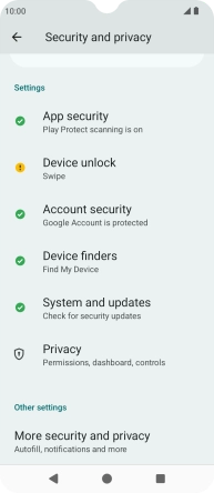 Press Security and privacy.