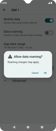 Press the indicator next to "Data roaming" to turn the function on or off.
