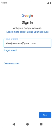If you don't have a Google account, press Create account and follow the instructions on the screen to create an account.