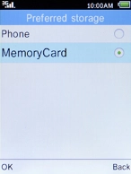 Select Phone and press the Left selection key to save your pictures in the phone memory.