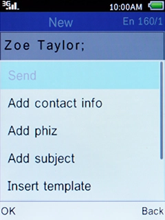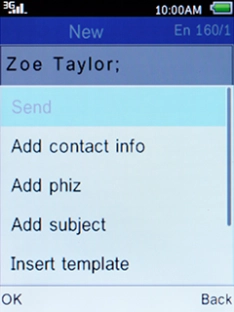 Select Send and press the Left selection key.